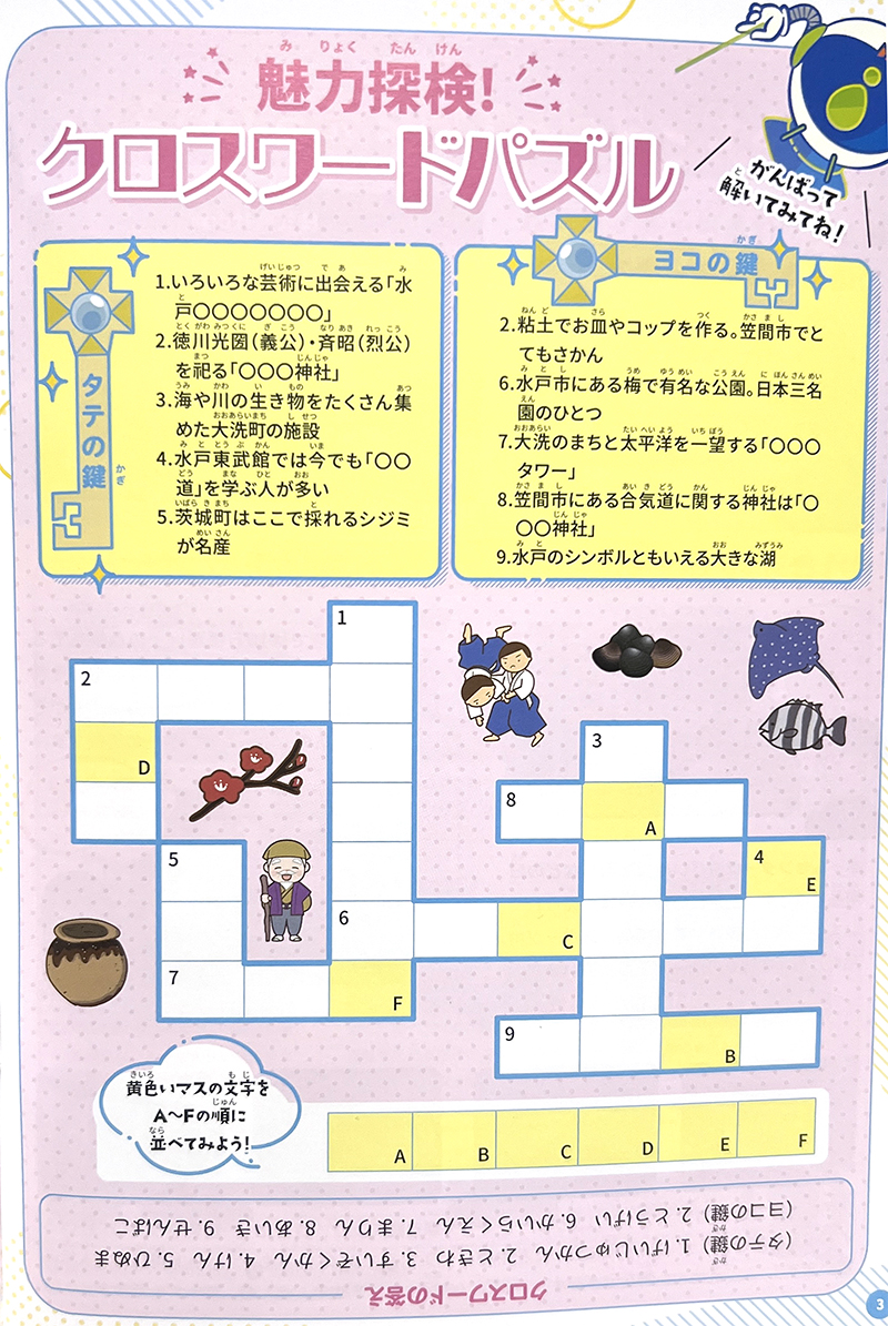 『小学生のためのお仕事ちょうさノート』2024年版は茨城県内5エリア、栃木県内1エリアの計6エリアごとに発行されましたので、各エリアごとに地域の特徴を取り入れ、計6つのクロスワードパズルを納品いたしました。